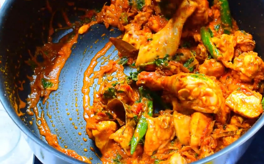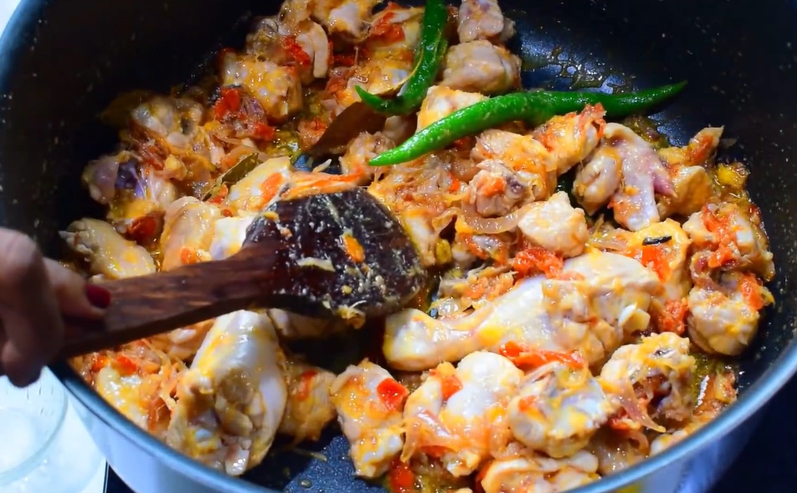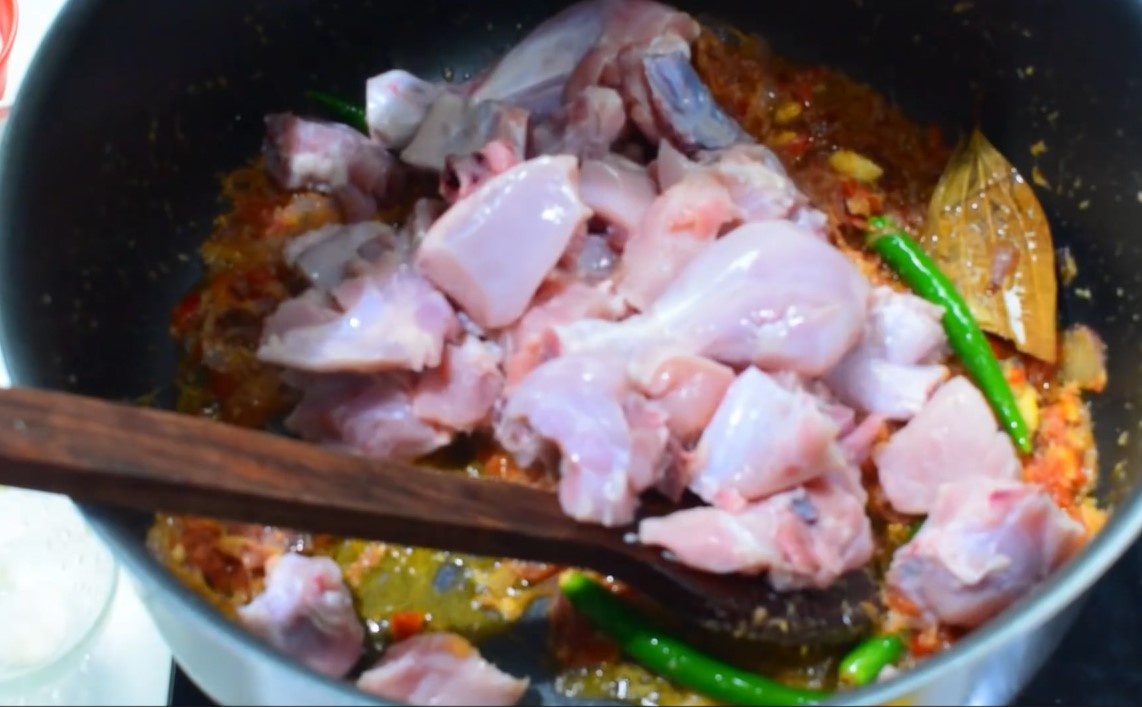 Mix well with the masala and cook for about 3 minutes so the chicken starts absorbing the spices.