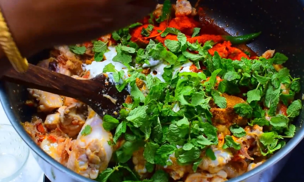 - Fresh mint and coriander leaves enhance the aroma and freshness